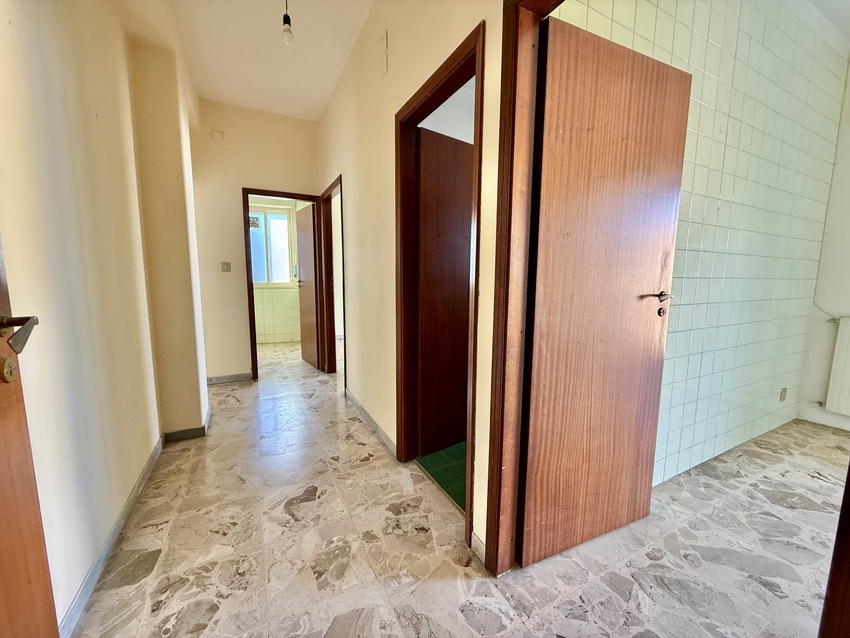 L’appartamento presenta rifiniture degli anni ’70, con segato di marmo a tappeto ed infissi in lamierino, ed è valorizzato da tre esposizioni che lo rendono soleggiato durante tutto l’arco della giornata.