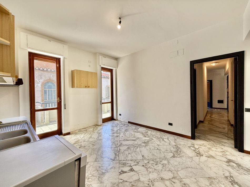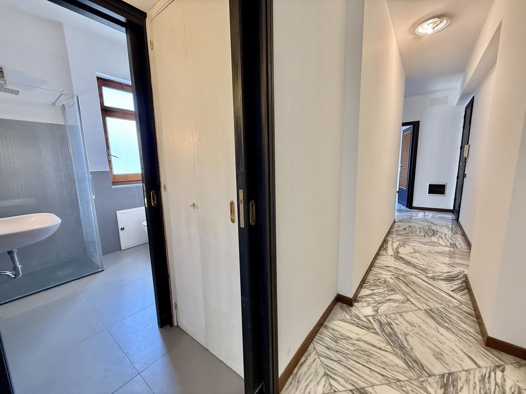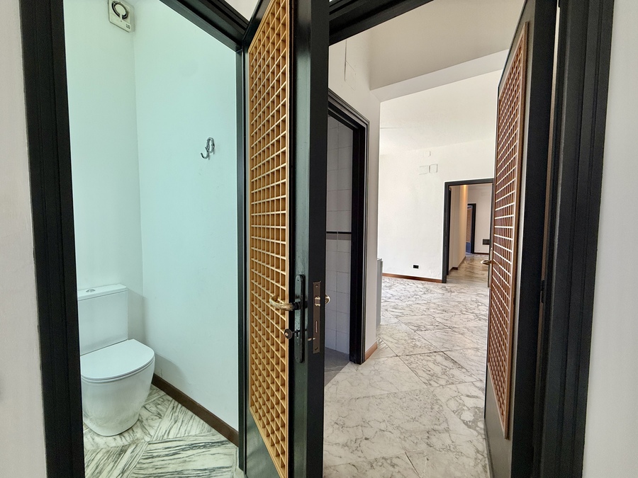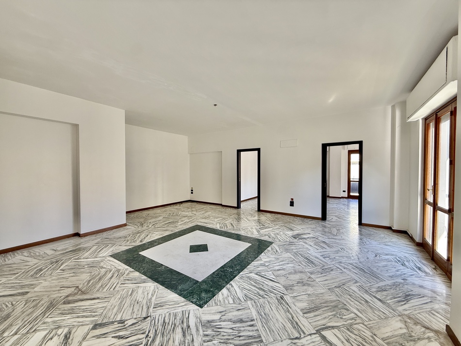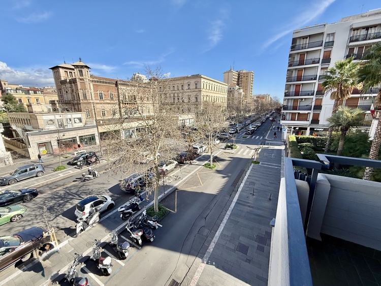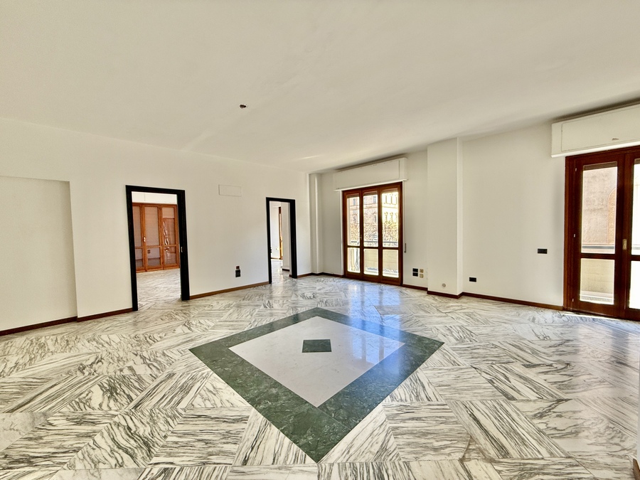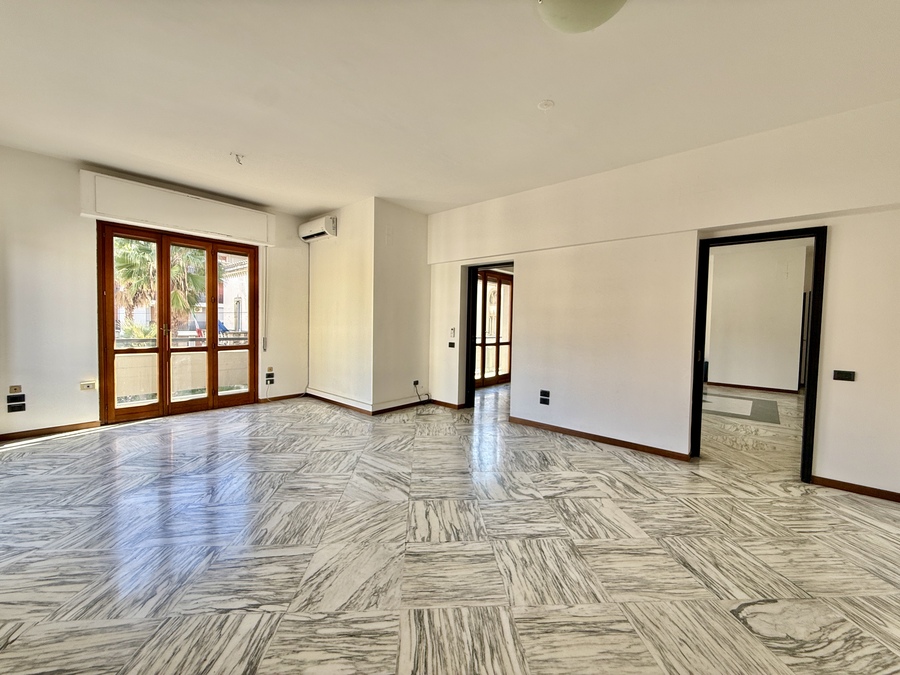 L’immobile è composto da due saloni entrambi di due vani, uno con balconi direttamente su corso Italia e l’altro con esposizione laterale, un bagno di rappresentanza, lavanderia, cucina abitabile, altro bagno completo di tutti gli elementi e due camere da letto.