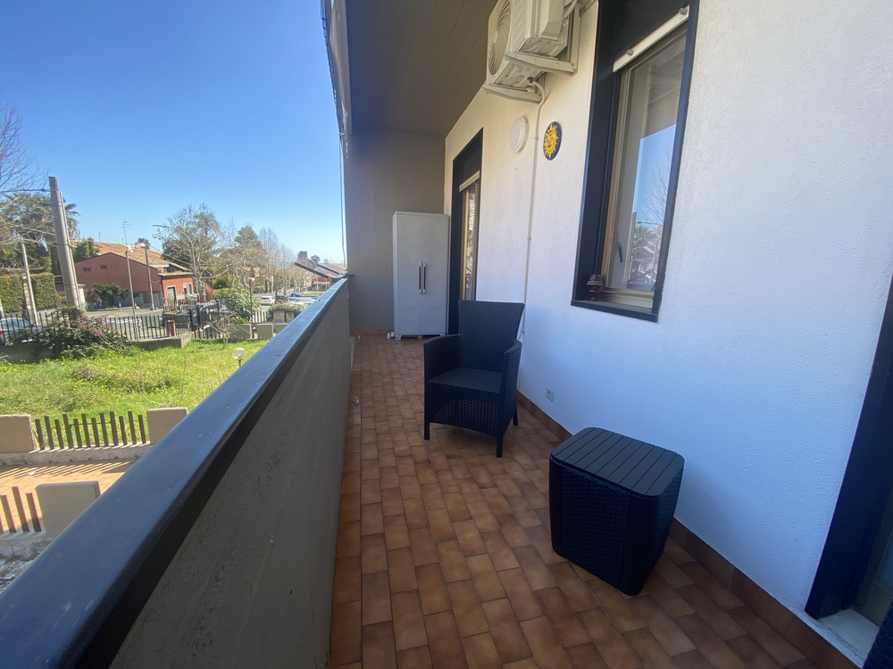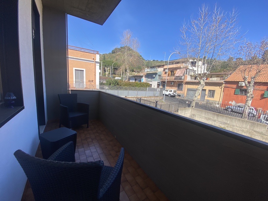 Tutti gli ambienti affacciano su un ampio balcone con esposizione sulla strada che rende la casa luminosa e ben arieggiata.