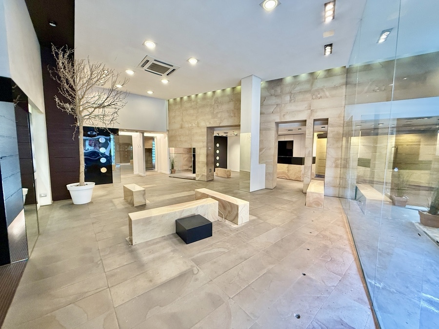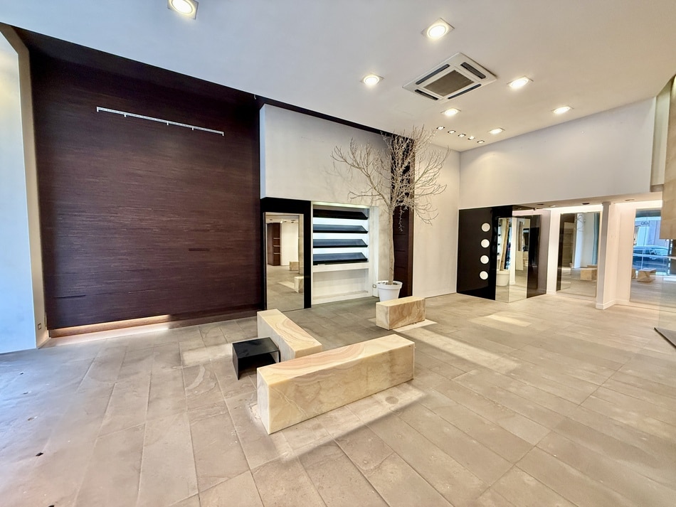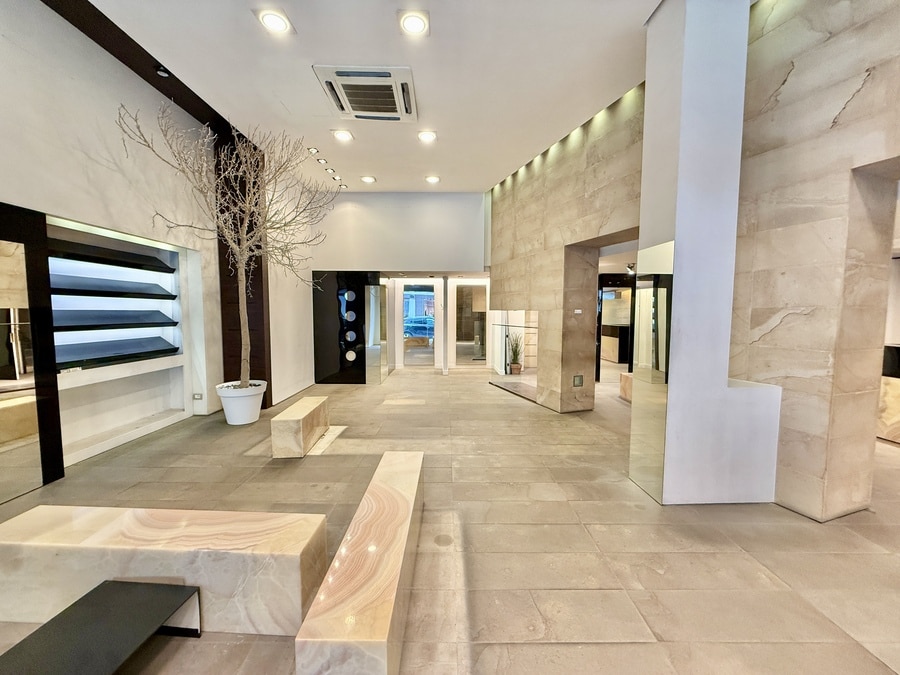 Data la qualità delle finiture, con pavimenti in gres posati a tappeto ed una illuminazione ben bilanciata, possiamo dire che questa proposta è ideale per attività professionali o commerciali che desiderano un ambiente rappresentativo unito ad una visibilità di primo piano.