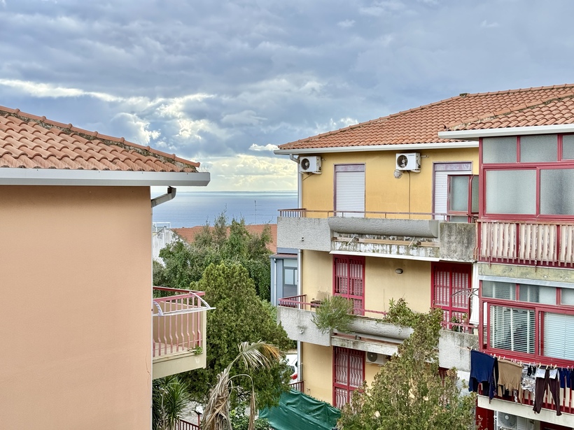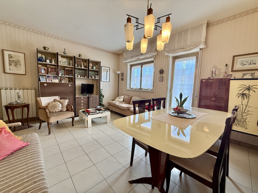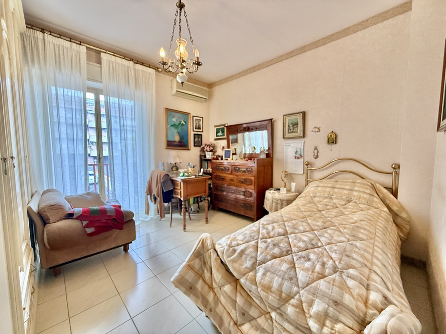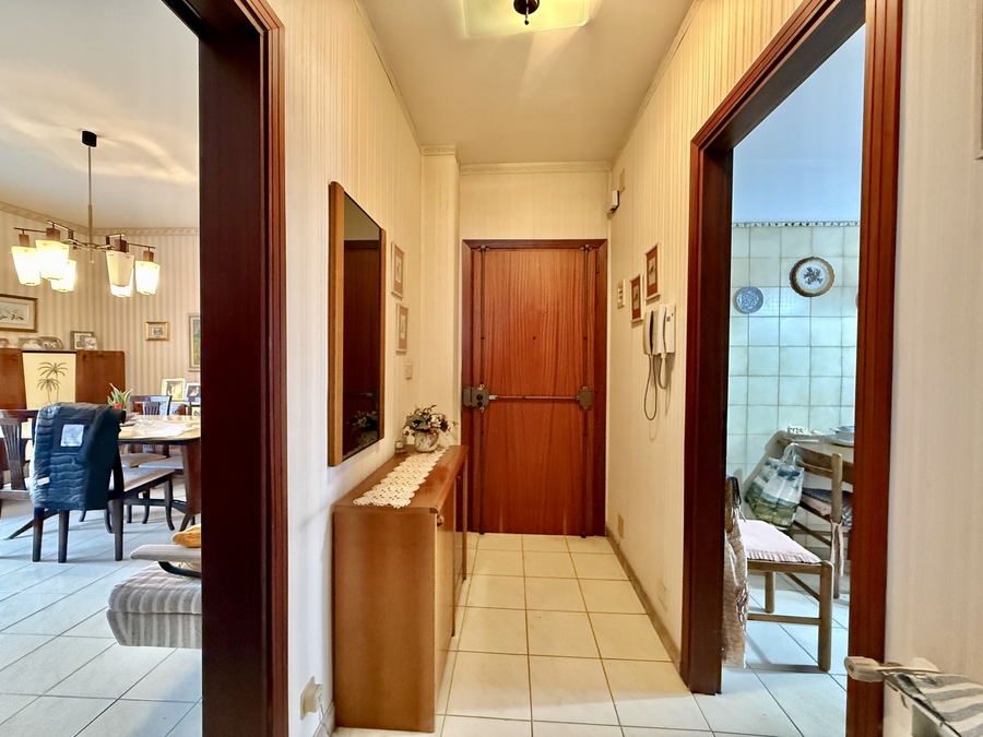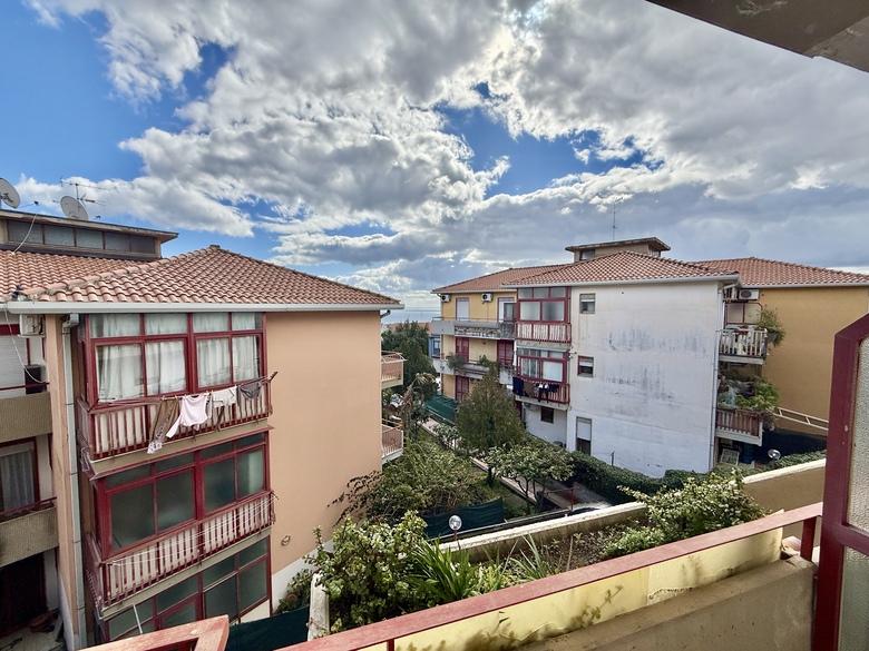L’appartamento è composto da saletta di ingresso, salone con affaccio su ampio balcone esposto a sud, luminosissimo e con vista mare, cucina con ampio balcone esposto a nord, corridoio, due camere da letto, bagno e lavanderia con servizio.