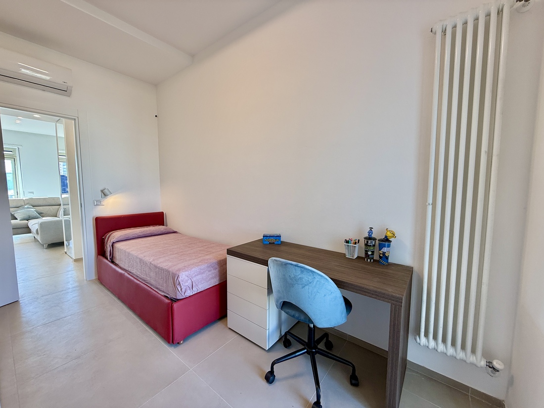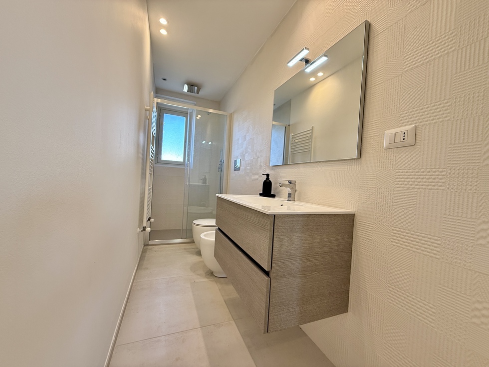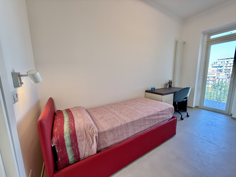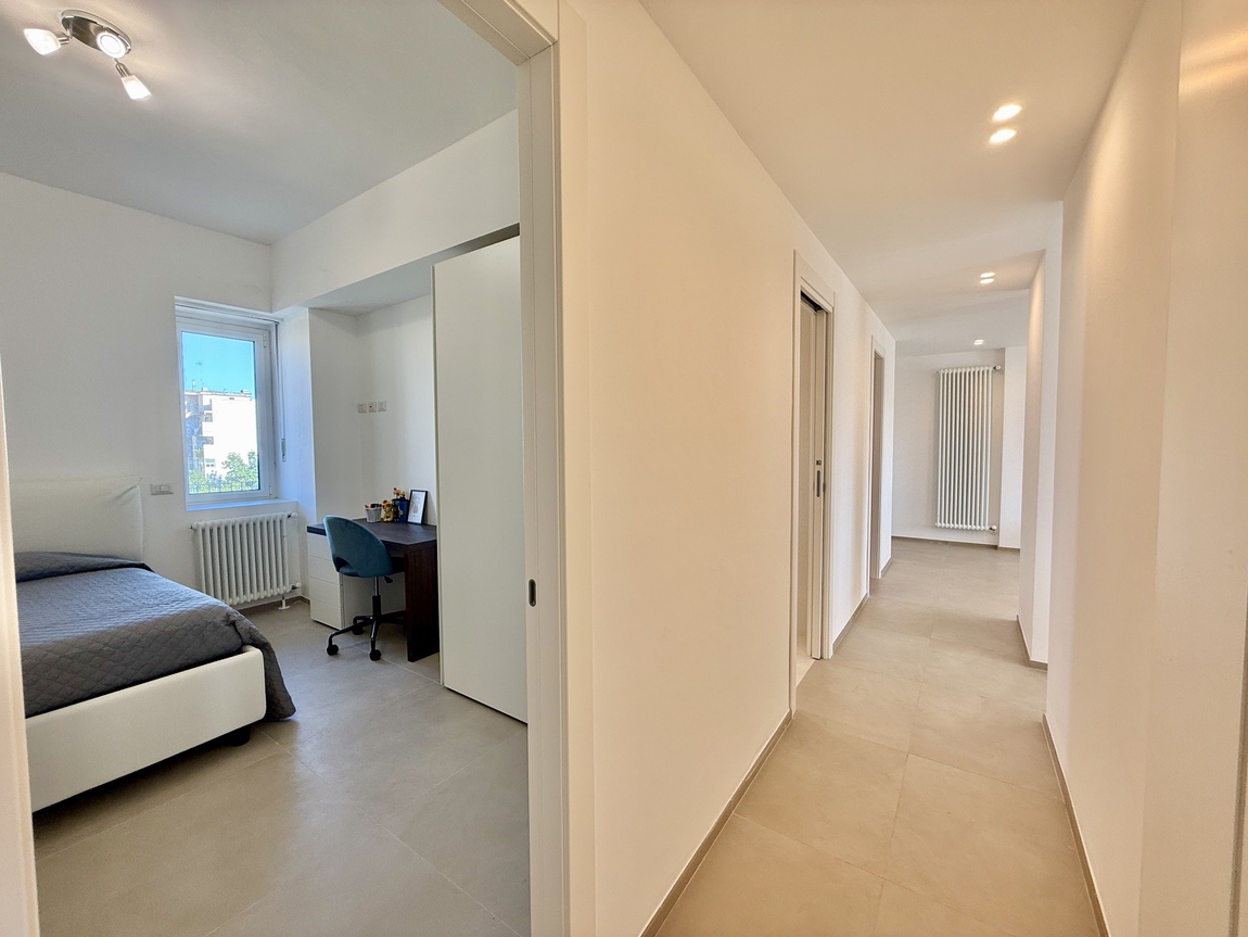 L’immobile, posto al quinto piano, vanta una doppia esposizione est ed ovest e una superficie di circa 100 mq. È stato recentemente oggetto di una ristrutturazione totale, che ha interessato rivestimenti, impianti elettrico e idrico, infissi, porte e pitture, oltre all’installazione del riscaldamento autonomo. Completano il comfort i climatizzatori a pompa di calore presenti in ogni stanza, che garantiscono un’ottima vivibilità durante tutto l’anno.