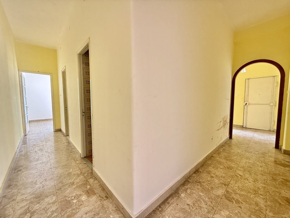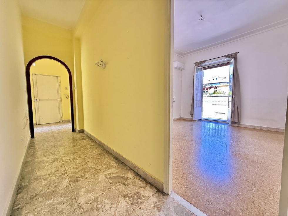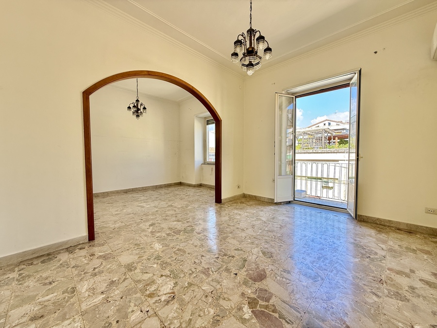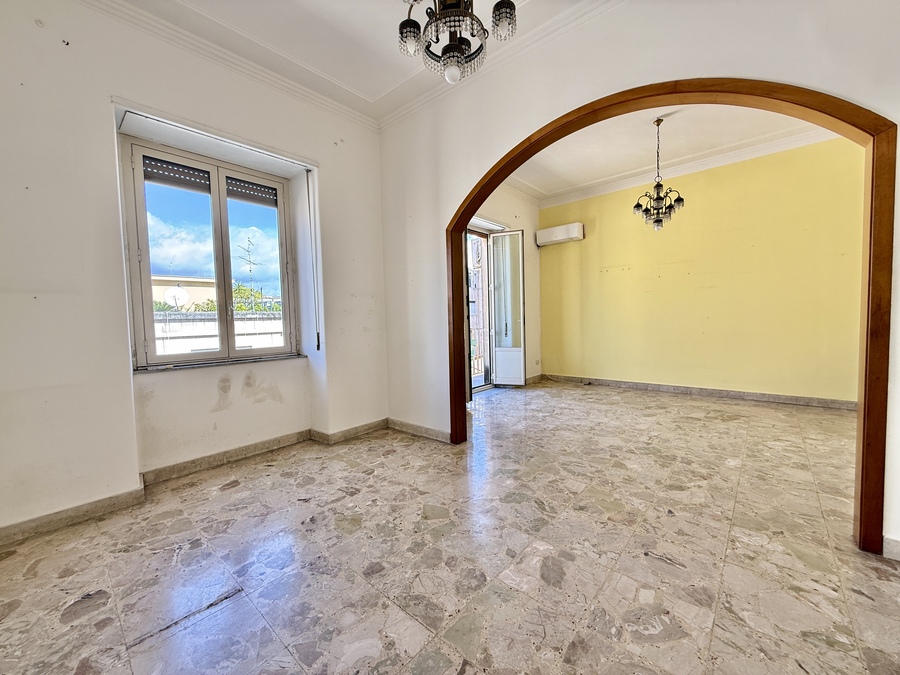 L’immobile, di 115 mq coperti, è composto da saletta d’ingresso, un doppio salone ed una camera con affaccio su via Umberto, un’ulteriore camera con affaccio interno, cucina abitabile, bagno ed una veranda.