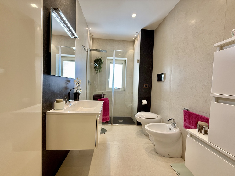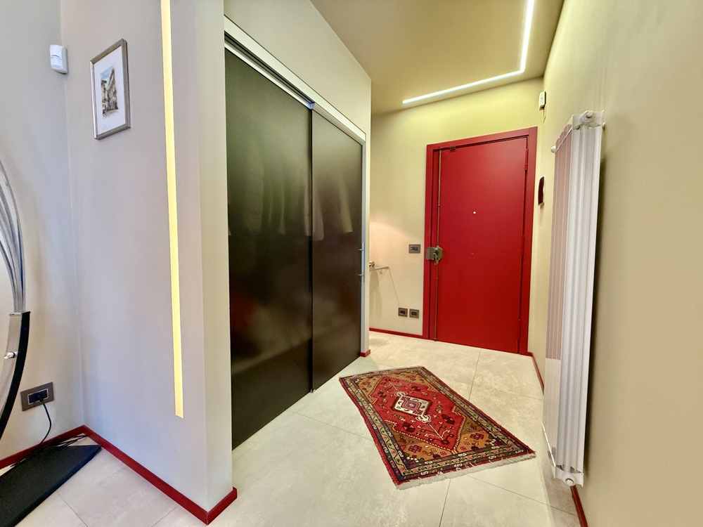 L’appartamento offre comfort e qualità grazie a: pavimenti in LAMINAM, porte in legno e vetro decorato su misura, infissi in alluminio con doppio vetrocamera, riscaldamento autonomo, climatizzazione in tutti gli ambienti ed impianto d’allarme.
