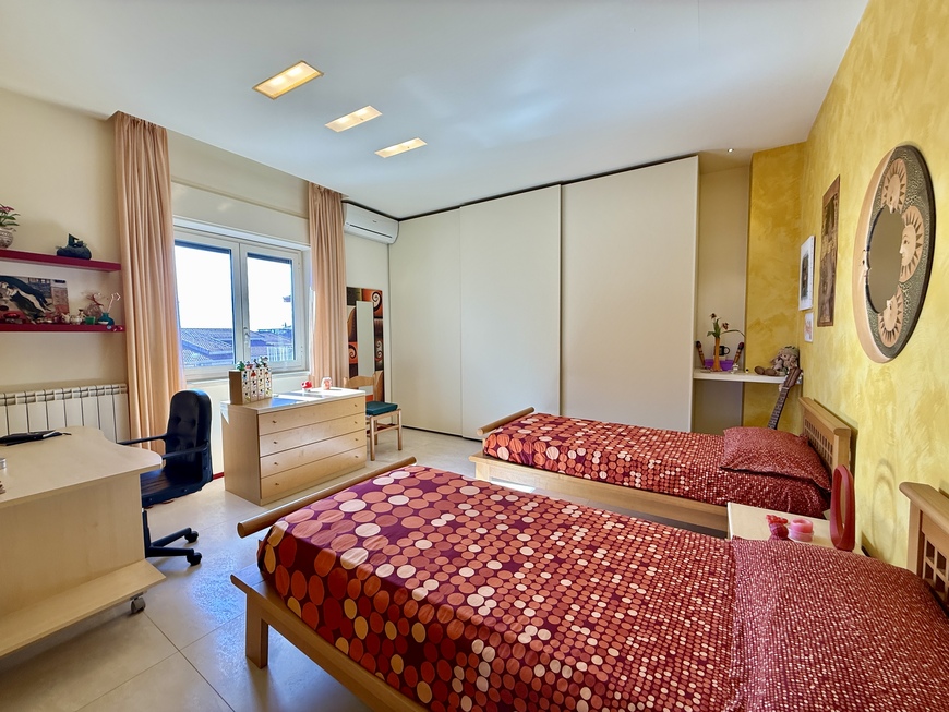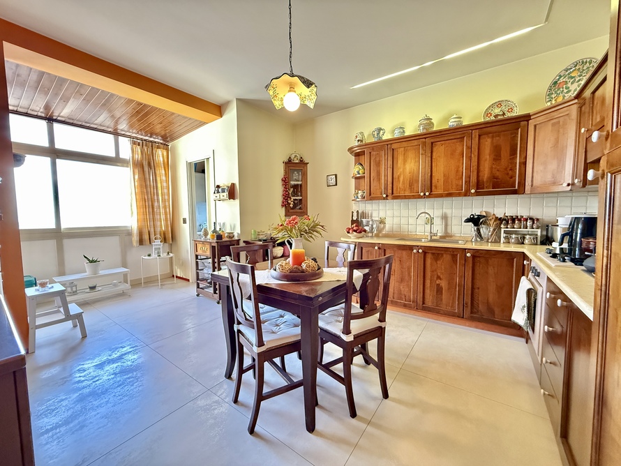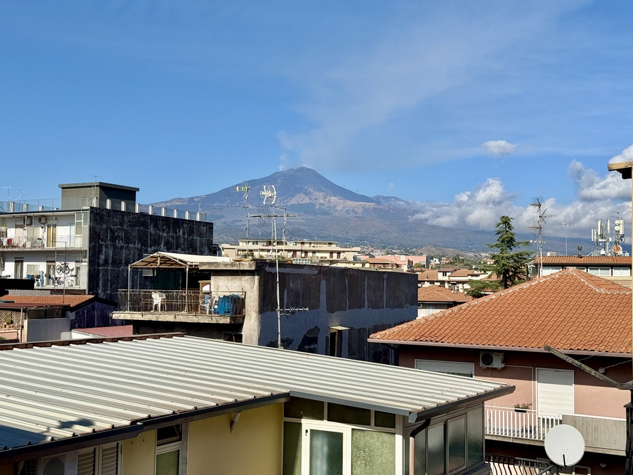 L’ingresso si apre su un ampio e luminoso salone con doppia apertura sul balcone, perfetto per momenti di relax o convivialità, il corridoio disimpegna e collega tutti gli ambienti: un comodo vano studio (ideale anche come ulteriore camera da letto), una camera matrimoniale con balcone vista Etna, una seconda camera da letto, un bagno moderno con doccia e rivestimenti in marmo, e una cucina abitabile con vista panoramica, oltre a ripostiglio e lavanderia.