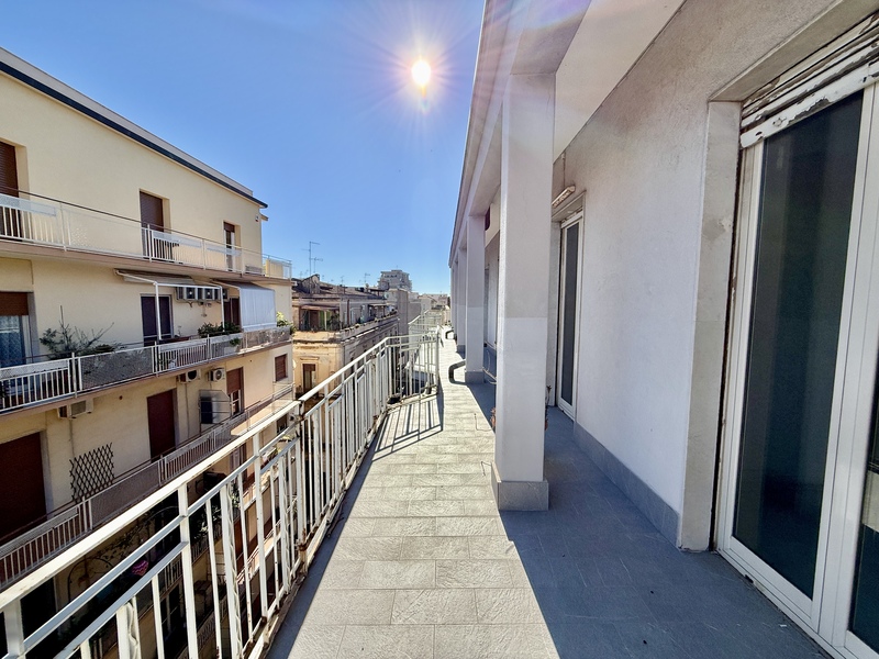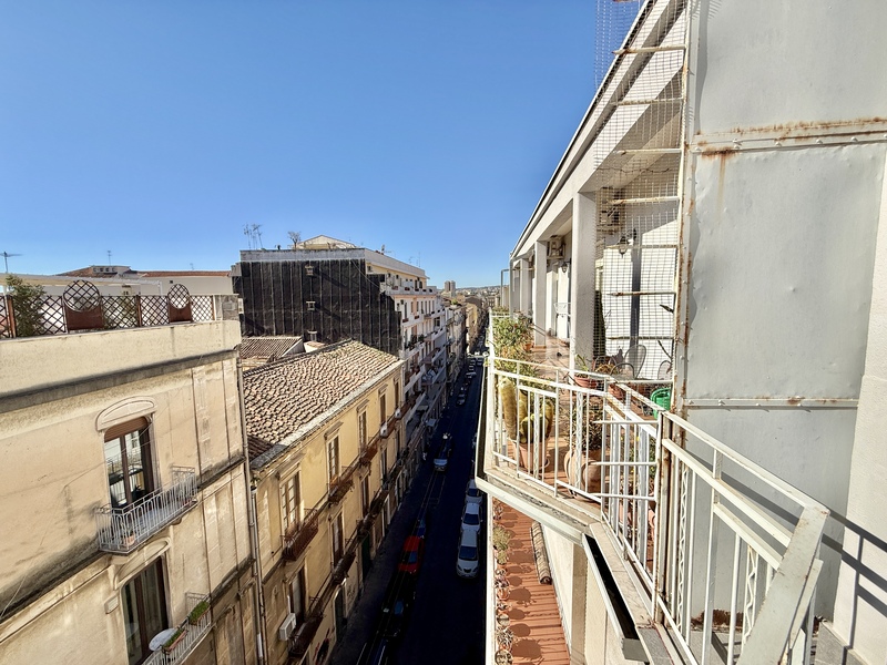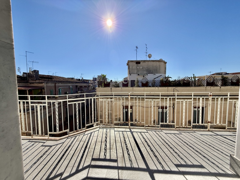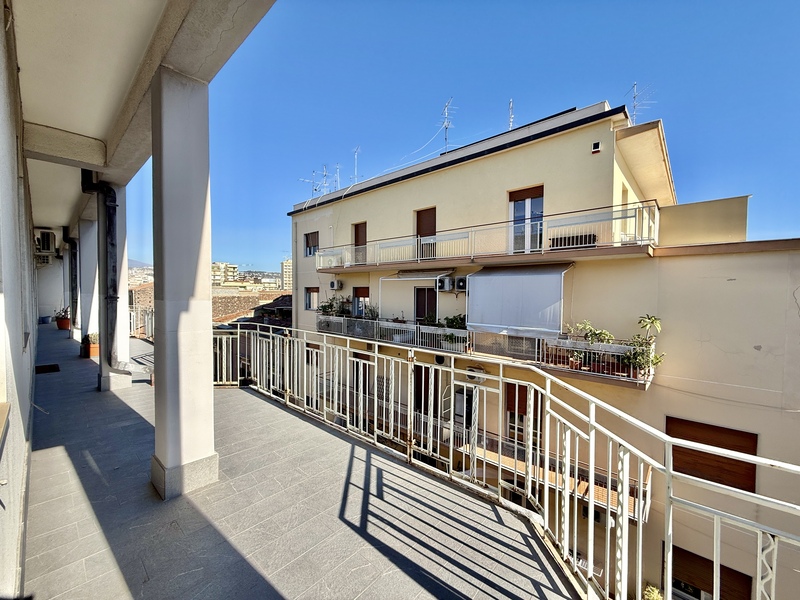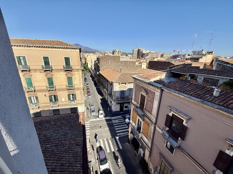 L’immobile, luminosissimo grazie alla tripla esposizione (sud, est e ovest), si distingue per una superficie coperta di circa 165 mq, arricchita da due balconi: uno angolare e terrazzato con affaccio su via Finocchiaro Aprile e via Gabriello Carnazza, dal quale si può ammirare anche la vista dell’Etna; un secondo balcone interno, dove è collocata la lavanderia.