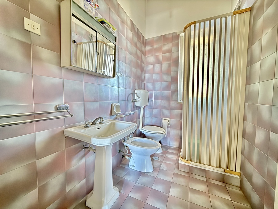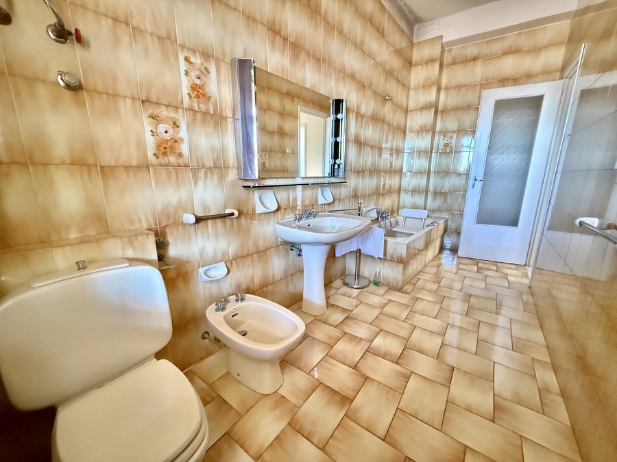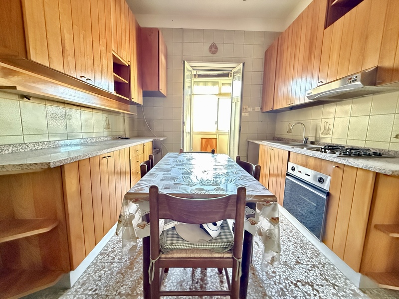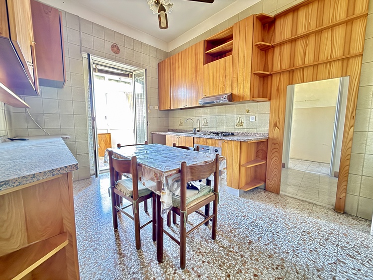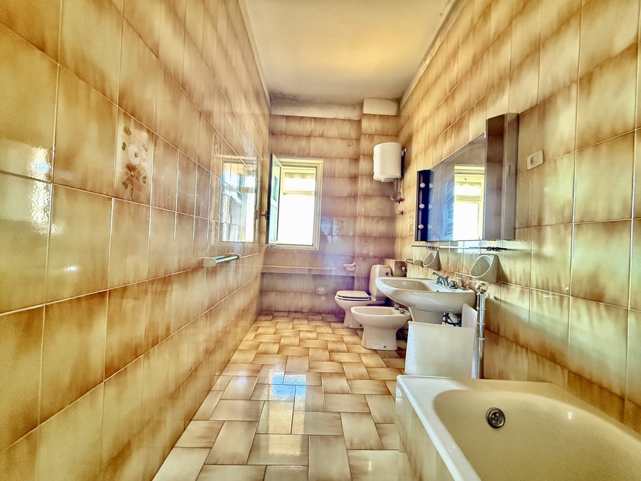 Le finiture richiamano l’epoca di costruzione, con pavimenti in scaglietta di marmo e infissi in legno, dettagli che lasciano spazio a un potenziale aggiornamento degli ambienti. Una ristrutturazione potrà infatti valorizzare la distribuzione interna, creando spazi più ampi, funzionali e in linea con le esigenze abitative di oggi.