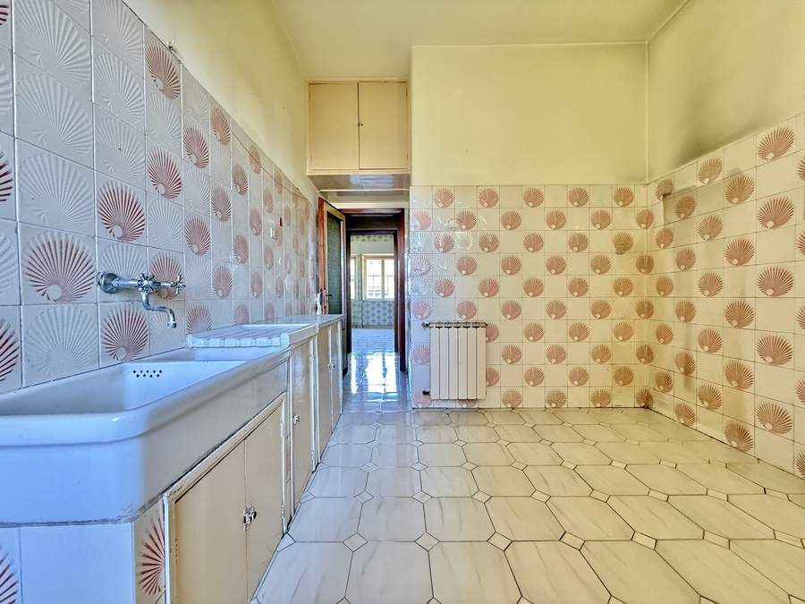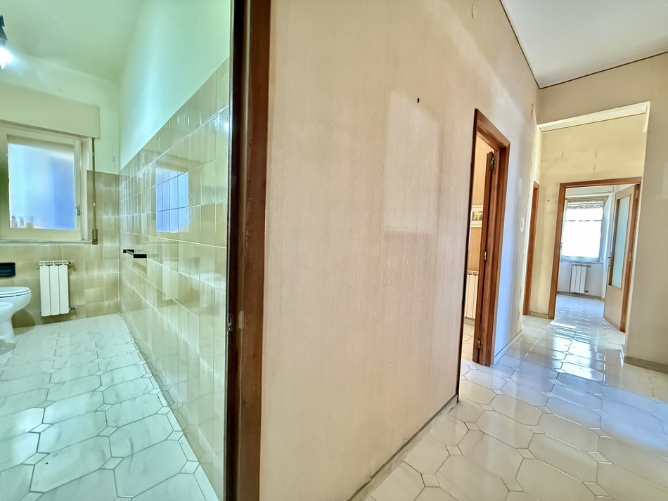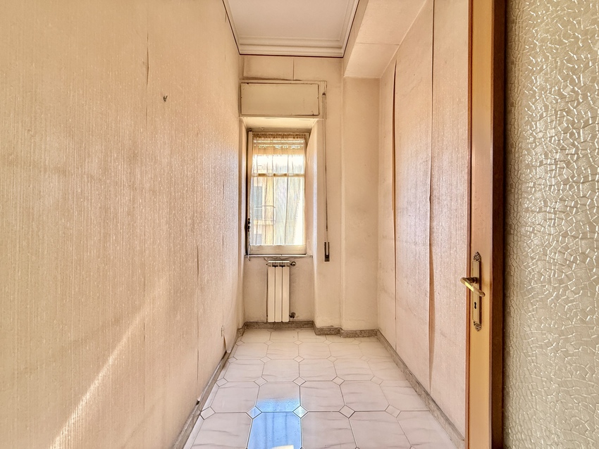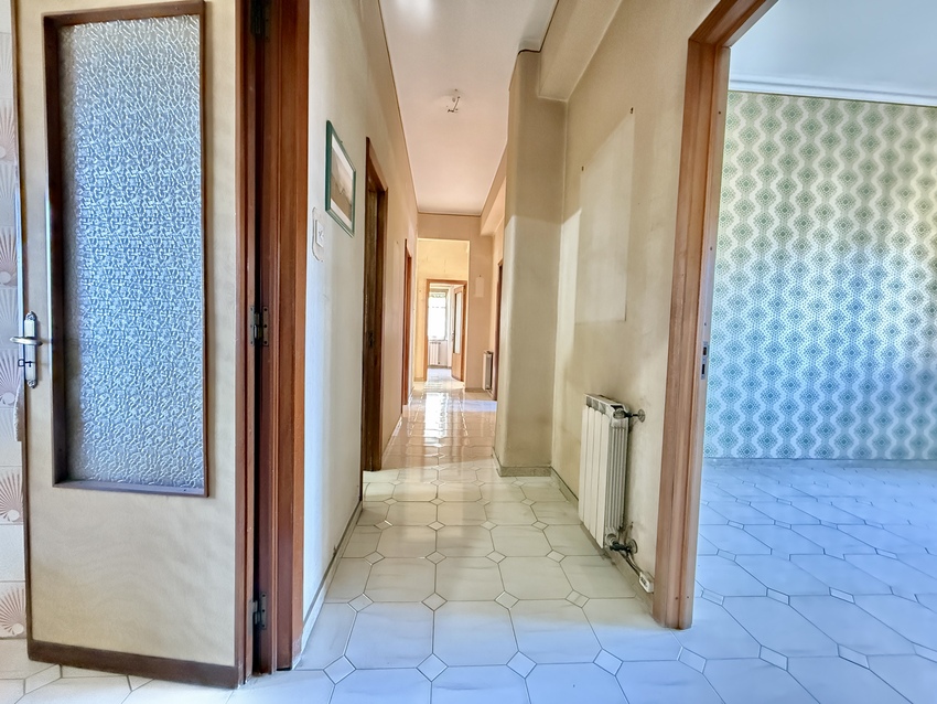 L’abitazione si apre con una saletta d’ingresso che conduce al corridoio centrale, lungo il quale si trovano tre camere da letto affacciate su viale Vittorio Veneto e un comodo camerino finestrato su via Cagliari. Sul lato interno si sviluppano tre ambienti comunicanti, caratterizzati da aperture su via Cagliari e sulla terrazza a livello. Completano la disposizione degli spazi due bagni, una cucina semi abitabile, la lavanderia e un pratico ripostiglio.