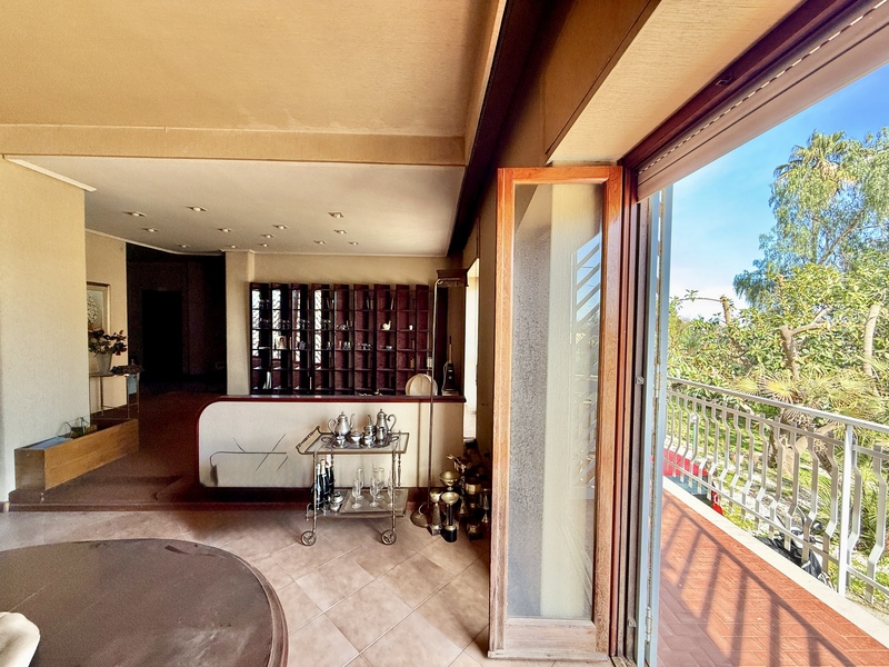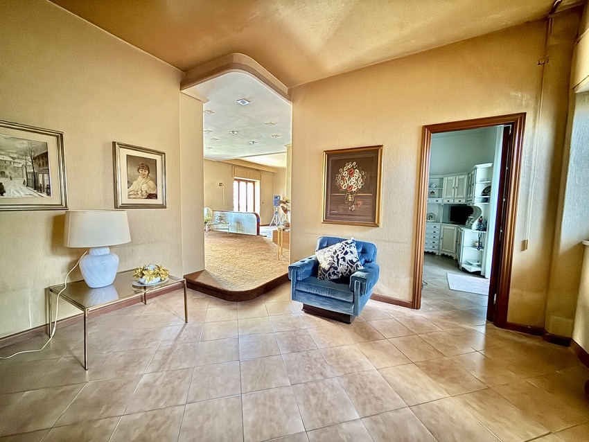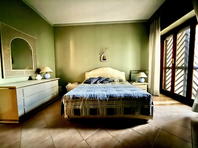 L’immobile, con una superficie coperta di circa 160 mq, presenta una distribuzione funzionale composta da ampio vano d’ingresso comunicante con salone doppio con affacci interni al residence, cucina abitabile, tre camere da letto, due bagni (uno con doccia e uno con vasca) ed una veranda ricavata su balcone interno.